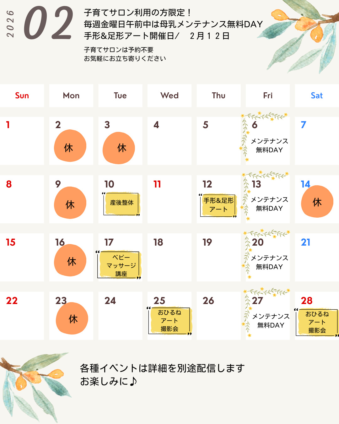 毎週金曜日午前中に子育てサロン利用時無料で助産師によるメンテナンスを行います