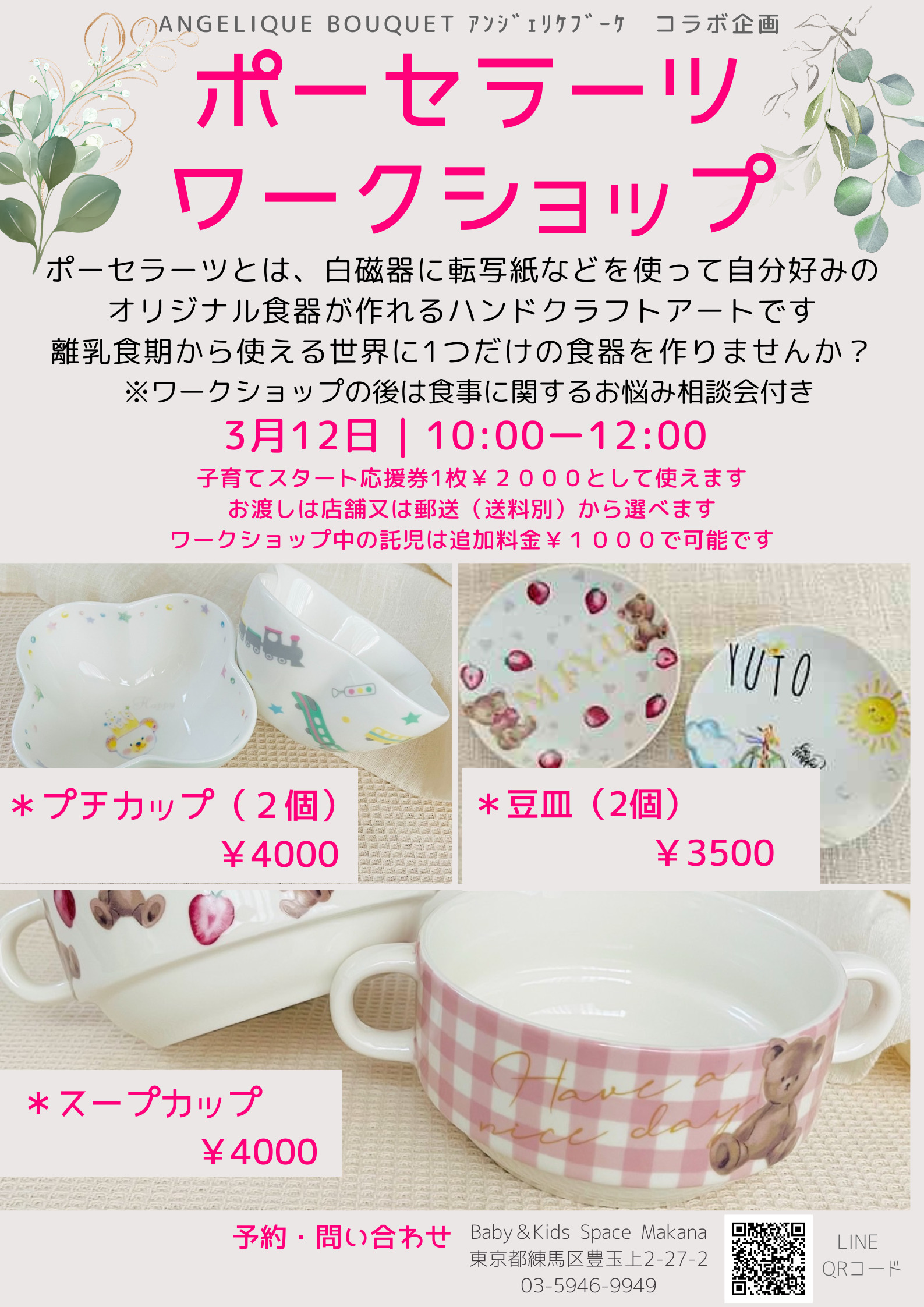 料金はどの食器を選ぶか、託児ありか無しかで変動します