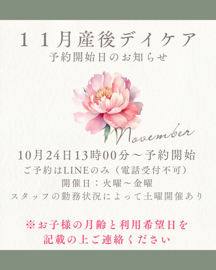 当施設のデイケアは生後1歳の誕生日の前日まで利用出来ることから予約が取りにくい状況です