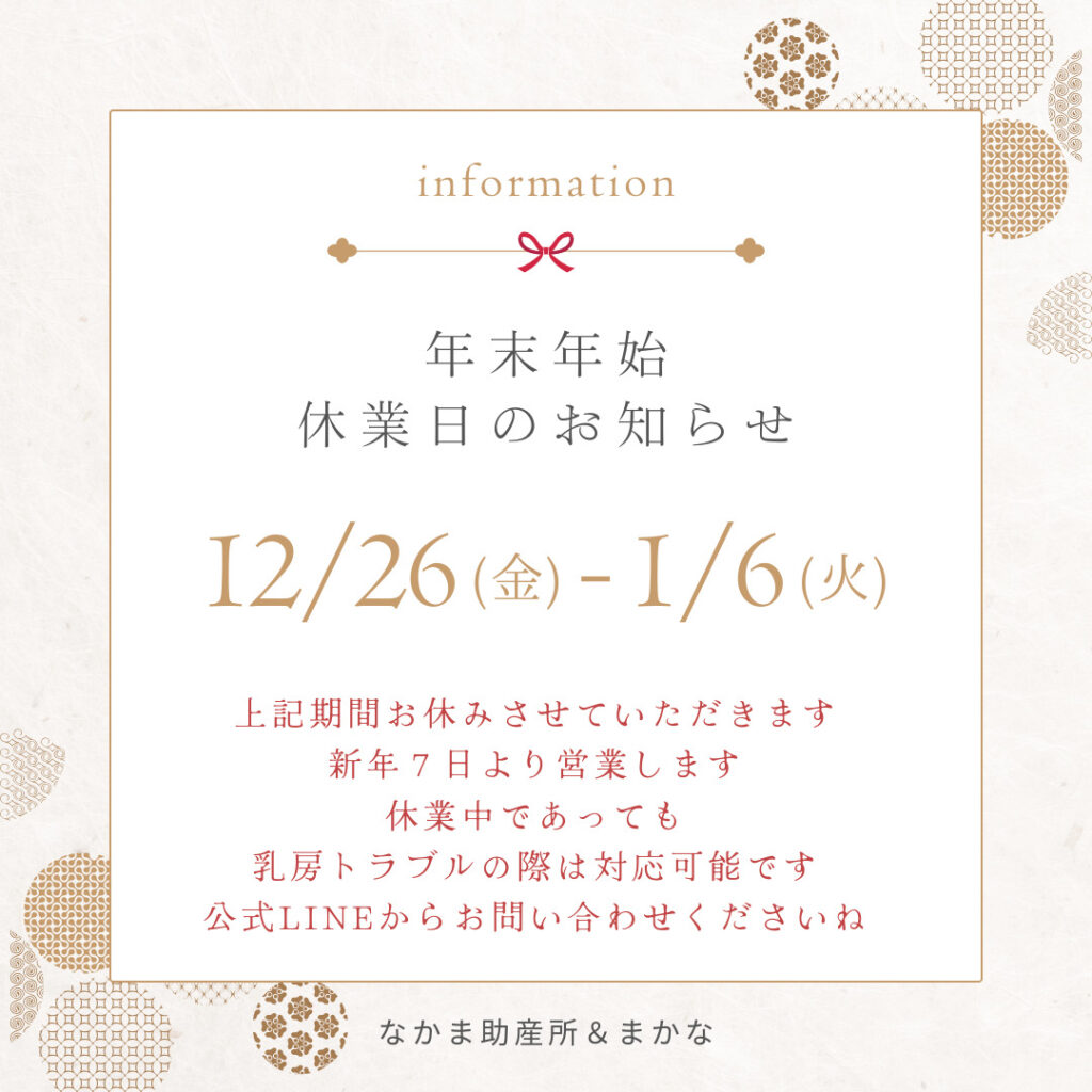 ※断乳による卒乳処置や育児相談、一時預かり保育などはお休みです