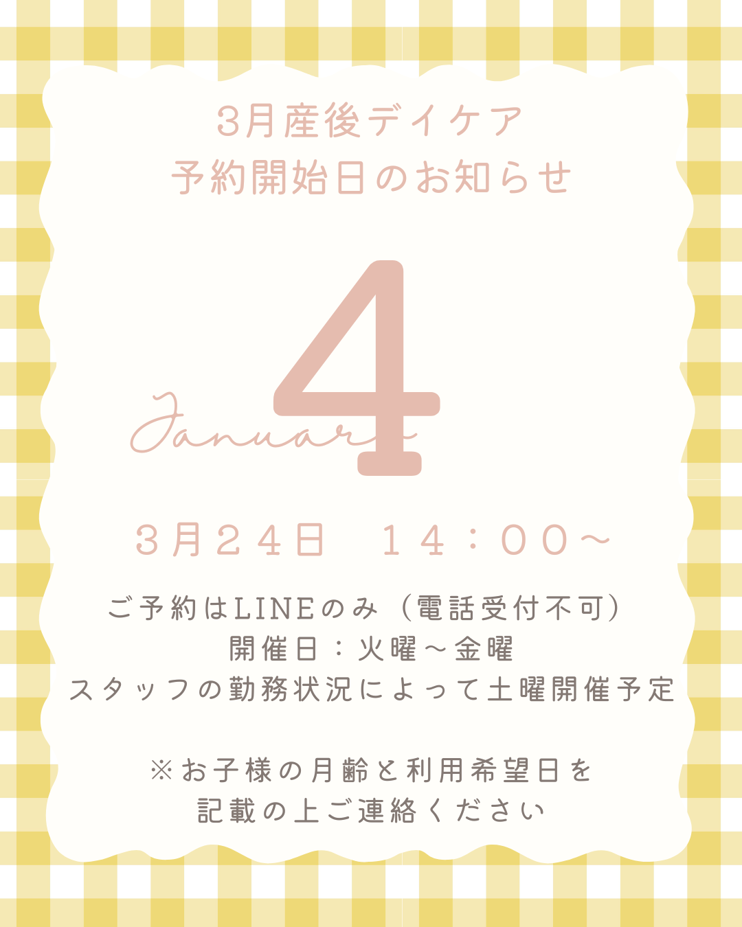 4月の産後デイケア予約日についてのお知らせ